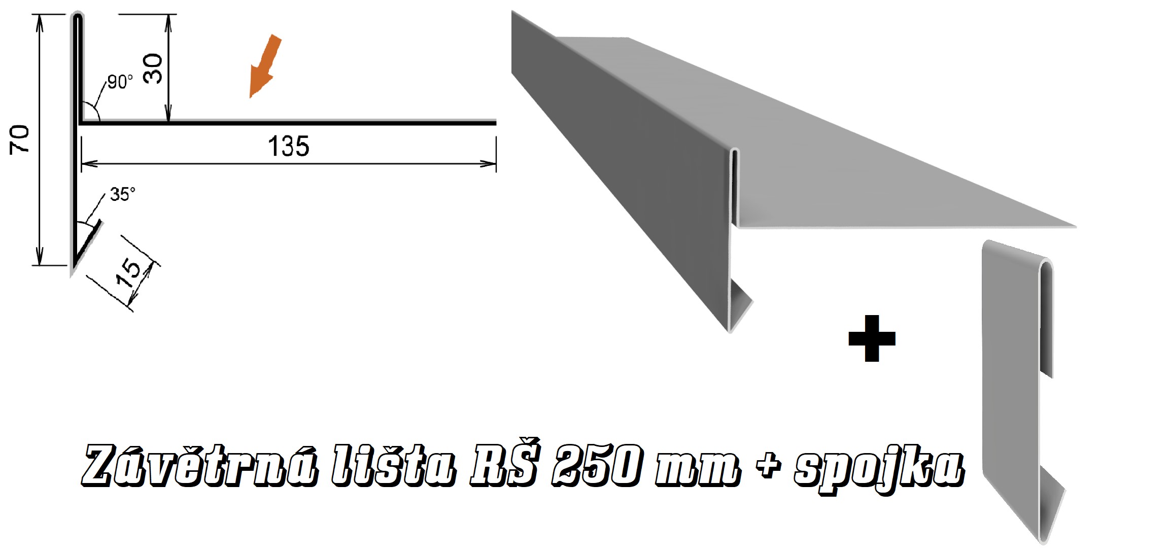 závětrná lišta var. G z poplastovaného plechu VIPLANYL + přesuvka